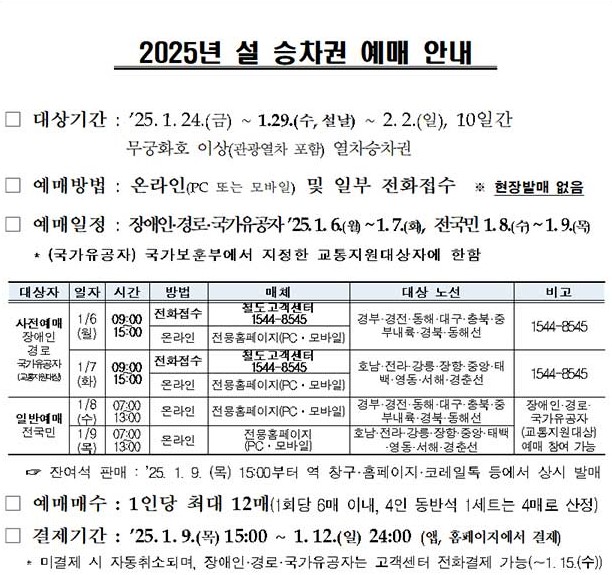 보통 구정 한 달 전 사전 예약이 시작됩니다. 정확한 날짜는 코레일 웹사이트에서 확인하세요.